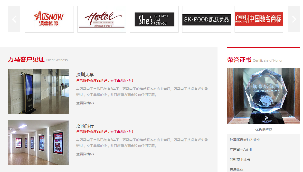 1)第一屏告訴客戶萬馬電子的品牌實(shí)力