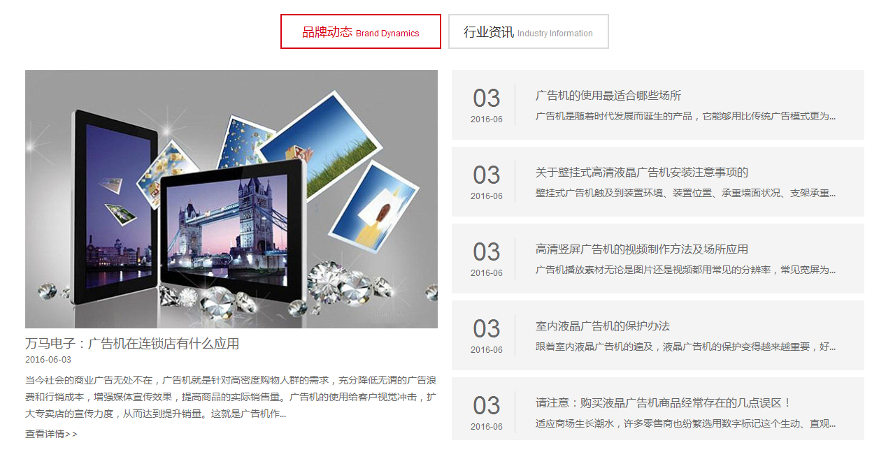 2)第二屏告訴客戶萬馬電子專業(yè)定制廣告機(jī),產(chǎn)品目的性強(qiáng),讓客戶知道萬馬電子是做什么的